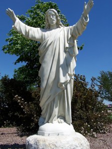 We find out the next day that Jesus had ascended. To the cemetery. The original intent of the Jesus statue was that he be placed in the cemetery but after the statue had hung out in the intern’s office for more than two years, it was a surprise when it actually happened.