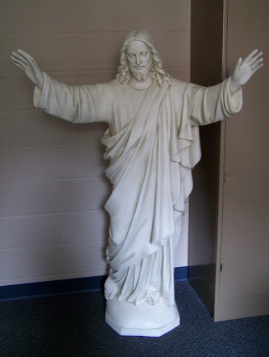 After we had cleaned up from of Women of Grace event, it was nearing 9pm. Karen and I then spent the next half hour looking for Jesus, certain that someone had just moved him but concerned that it might have been the high school choir kids who were there that night. We would feel better going home if we knew where Jesus was.