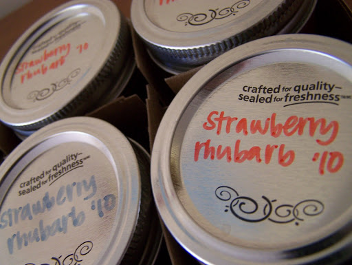 I made three batches of strawberry and rhubarb jam. That’s 24 half-pint jars. Sixteen and a half cups of sugar. Mmm.