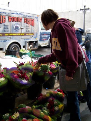 We decided on the St.Paul farmer’s market for our next day activity. We grabbed coffee on the way this slightly rainy, kinda icky Saturday morning and found a place to park near the downtown market. Had I the time or the plans to be home in the following days, I certainly would have stocked up on my veggie produce. We both did walk away with various flavored honey sticks (Perfect for tea!) and a bouquet of flowers for $6. I also brought home some pie pumpkins with the hopes of making something pumpkin-y from scratch in the near future. The plan is to go again this Saturday, hopefully with soup recipes in mind, to take advantage of the produce!