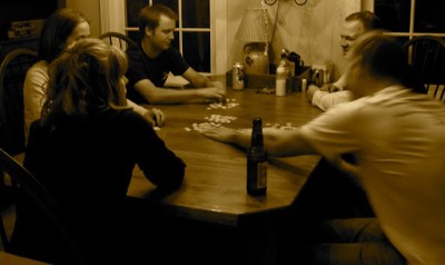 … An evening of bananagrams with a few of my own bananas and some of the guys. Lynn and Kyle added a dimension to the addicting game – instead of yelling,”Peel!” when appropriate, a word or phrase is assigned in its place. “Frigidaire.” “The man punted Baxter.” “Marshmallow.”