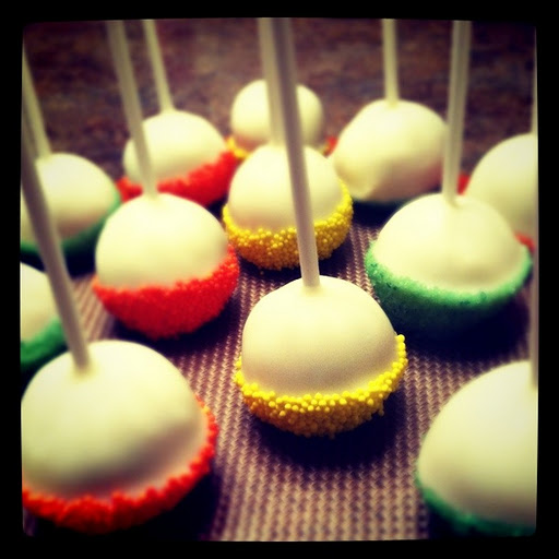 I had a cake in the freezer now for a few weeks and decided it was time to make a batch of cakepops. I’m due to send a few packages out; the cakepops will be included. [I think I was cakepopped out after this summer but it was fun to return. Have I told you that I have a thanksgiving turkey cakepop order coming up, in addition to a wedding cakepop event for next June? Holy balls.]