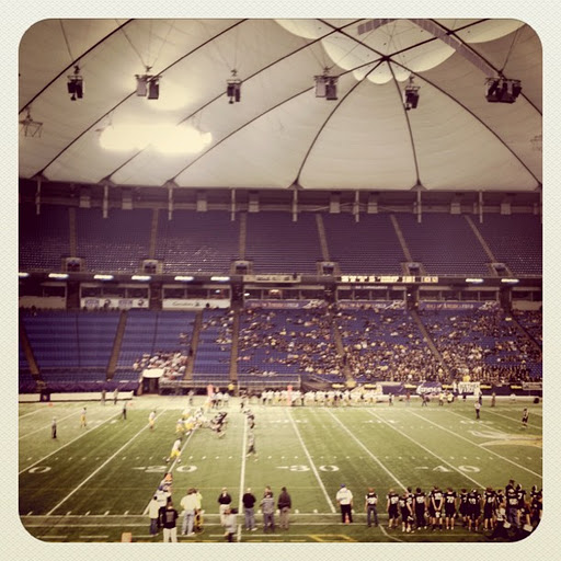 19 NovI went to the semi-final football playoff game at the Metrodome today. Dawson-Boyd Blackjacks vs. Blooming Prairie Awesome Blossoms. While I sat on the side of the team where I now reside, deep down I cheered for the team across the stadium. Talk about conflicting loyalties.