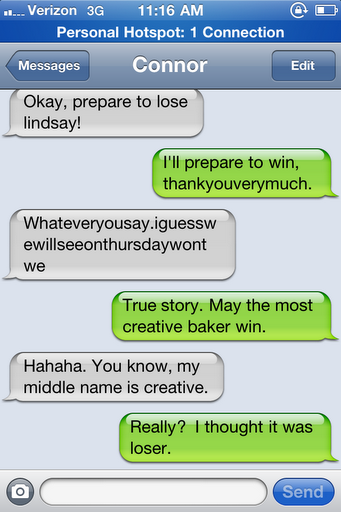 Because my opponent and sworn bake-off enemy, Connor, didn’t bring anything!