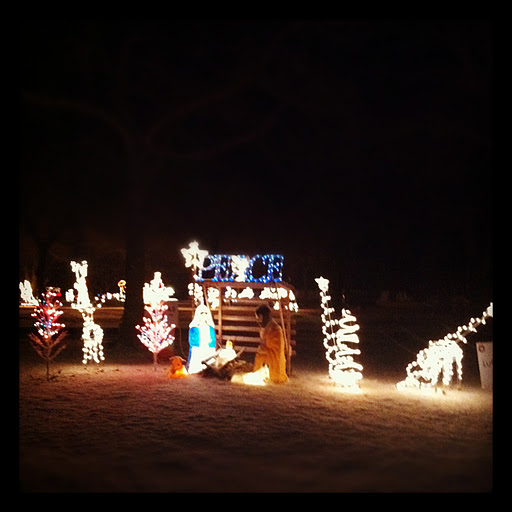 | A dozen grovers ate pizza on Friday night and then drove to the Austin Festival of Lights in the newly fallen snow. |