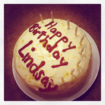 Following dinner, things got out of hand. I had asked jD to bring his electric drill; I needed assistance hanging a heavy mirror in my bedroom. Done. We threw the tiny plastic gnome with mushroom parachute down the stairs [“This parachute is a napsack!”], and we watched Modern Family [our show of choice when gathered together], laughing at Phil Dunphy. We finished off the birthday evening with a lemon cake Lauren made [so good!], many Friends references, and a game of scrabble that lasted us until 1am.