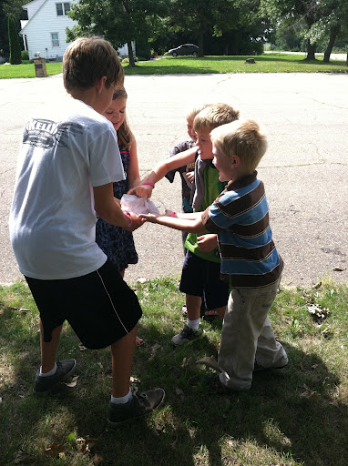 My favorite part of the day? The seventh and eighth graders who signed up – there were three – signed up under the title of “counselor.” Being so last minute, there was no training involved for their role. I told them that they would participate along with everyone else but I might call on them to do a few errands or help with activities throughout the day. Emma, Alec, and Elly were awesome counselors beyond my expectations. These three had all spent a week at Good Earth Village as campers this summer and they had an idea what counselors do at camp. They led younger campers around by hand. They taught their favorite games from camp. They led small group time with great leadership. High fives and $5 gift cards to DQ for these awesome kids!
