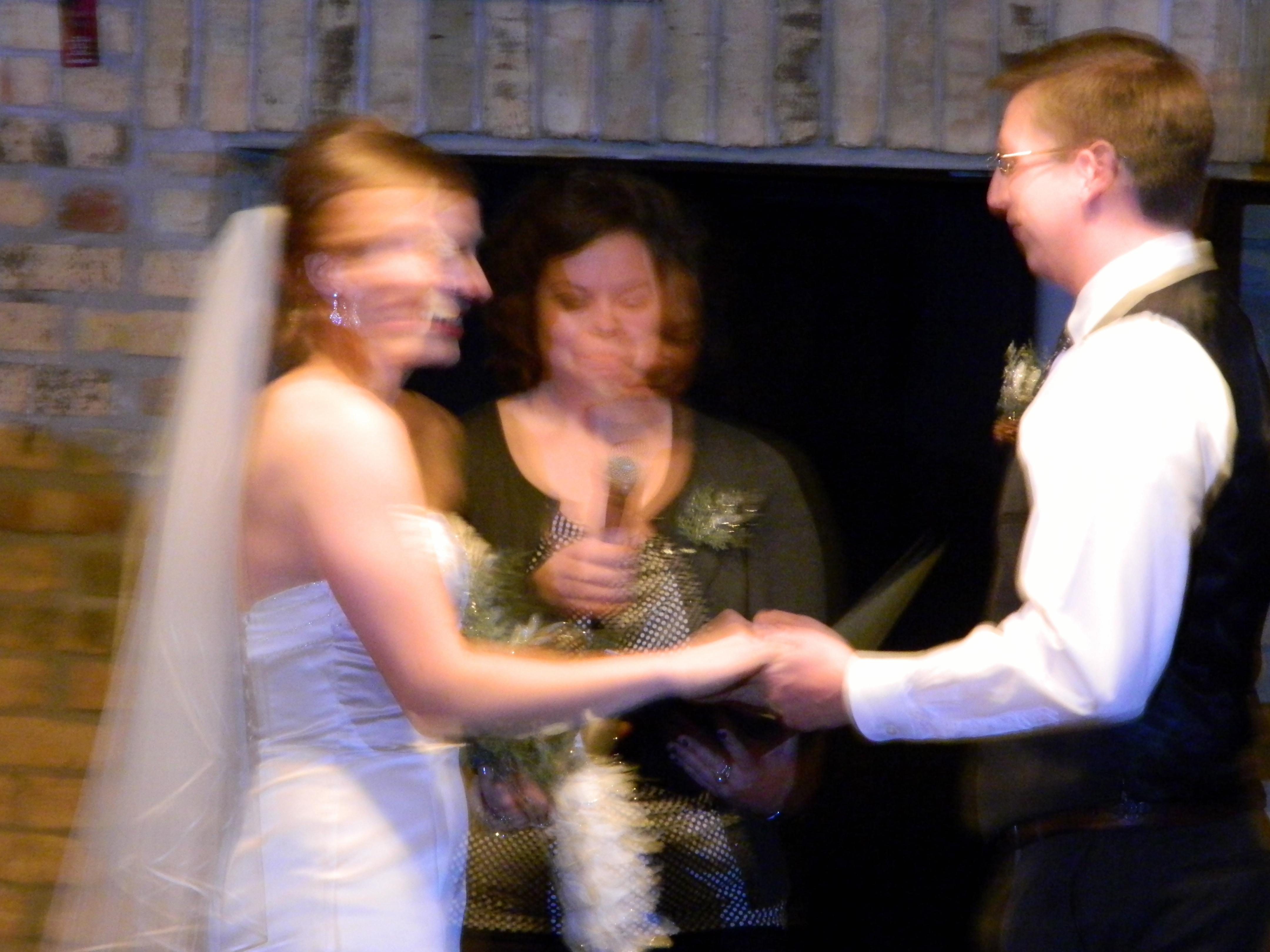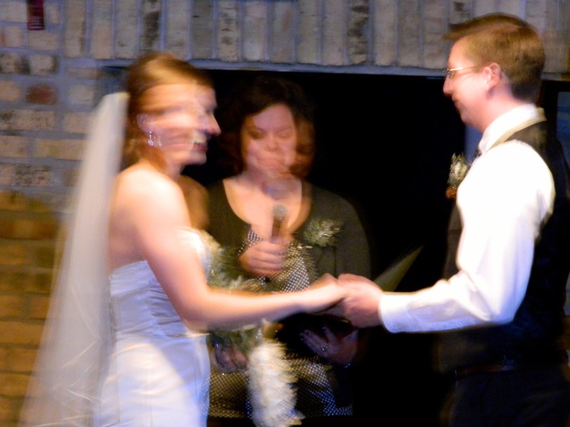 It’s blurry. But I still wanted to share. The couple smiled and laughed the whole way through. [Especially when I accidentally said “her” instead of “him” and Domanic couldn’t get the rings off the knot that somehow appeared.]