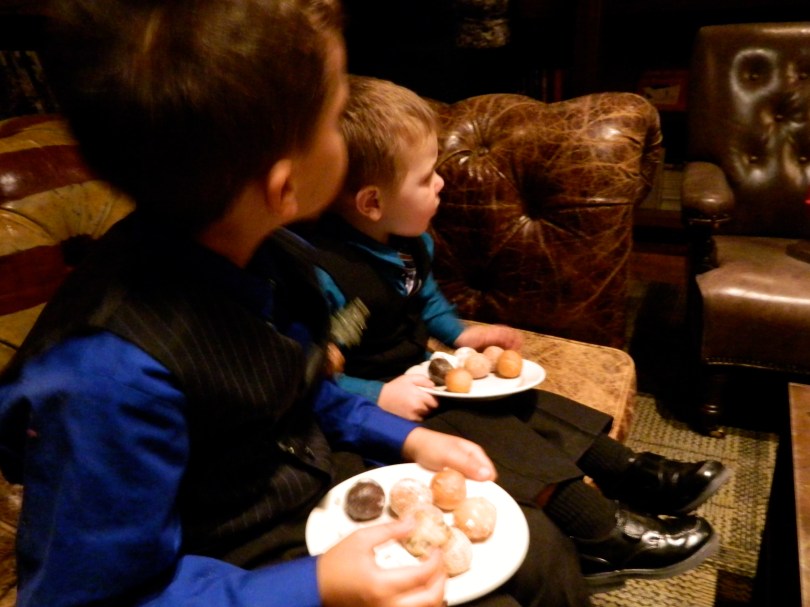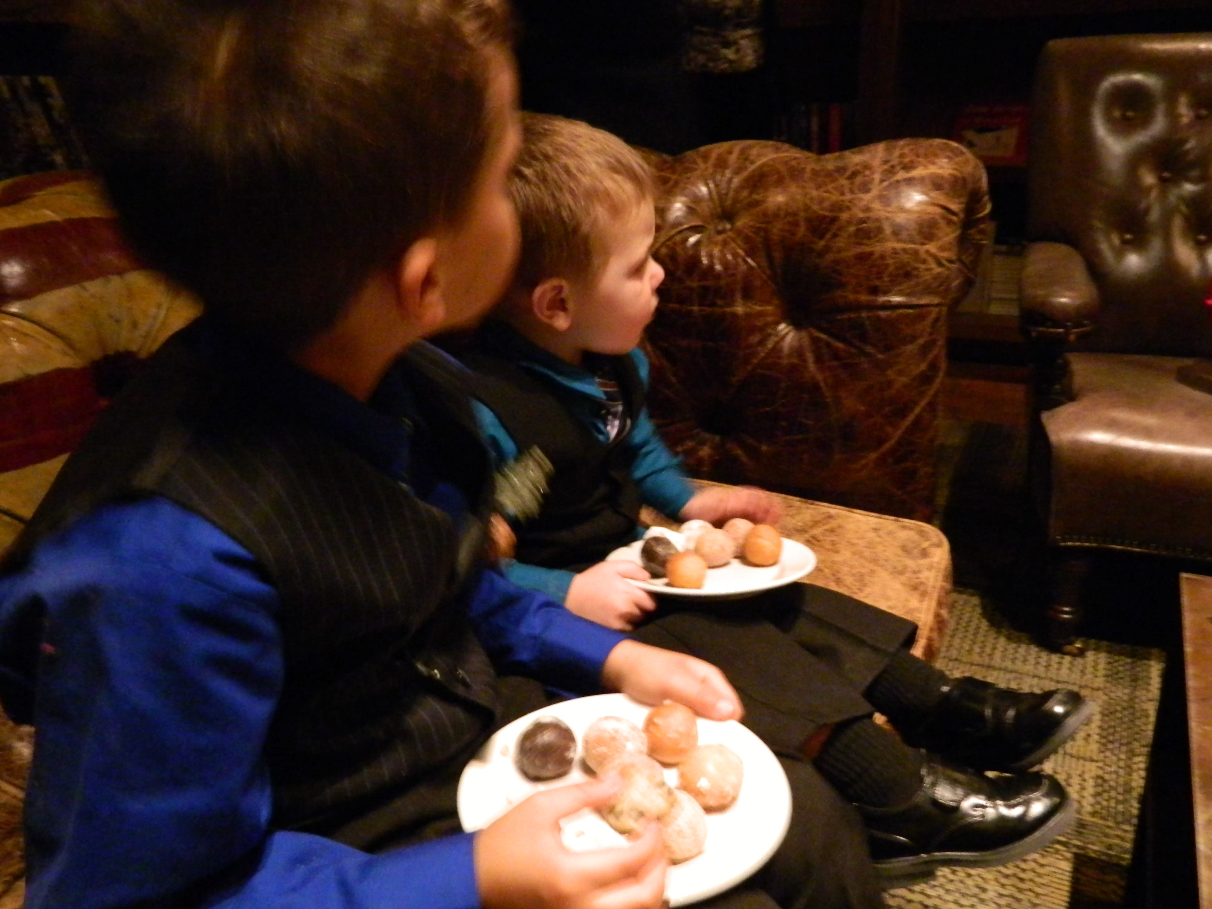 There were donut holes! The spiffed-up Banana kids loaded up!