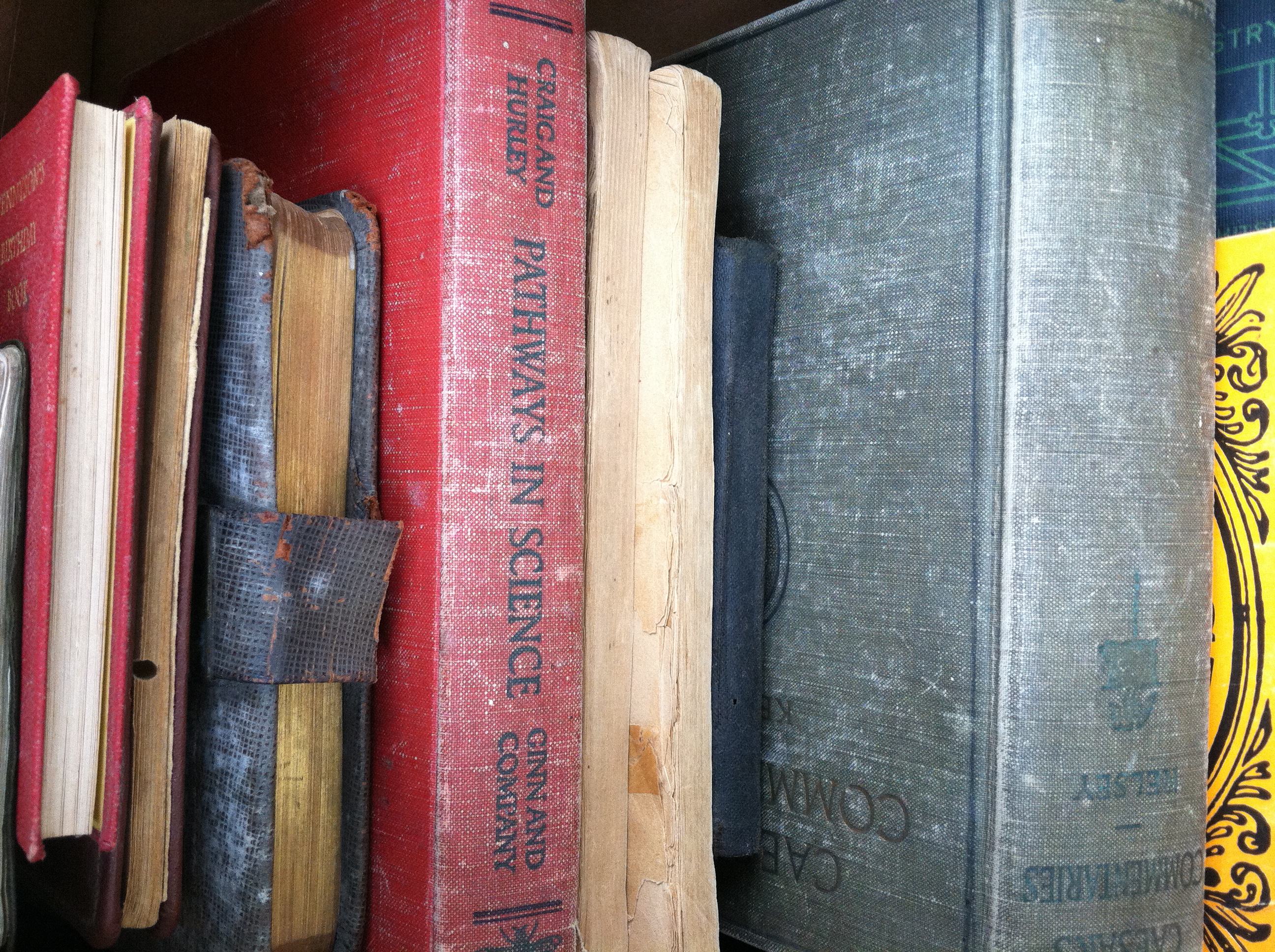 A box of old books cost me a couple dollars but there are treasures in there. Catechisms in Norwegian, a line-a-day journal from 1924 that its original owner filled out sparingly [February 1927: Ma papered her room.], and some other fun/unique treasures.