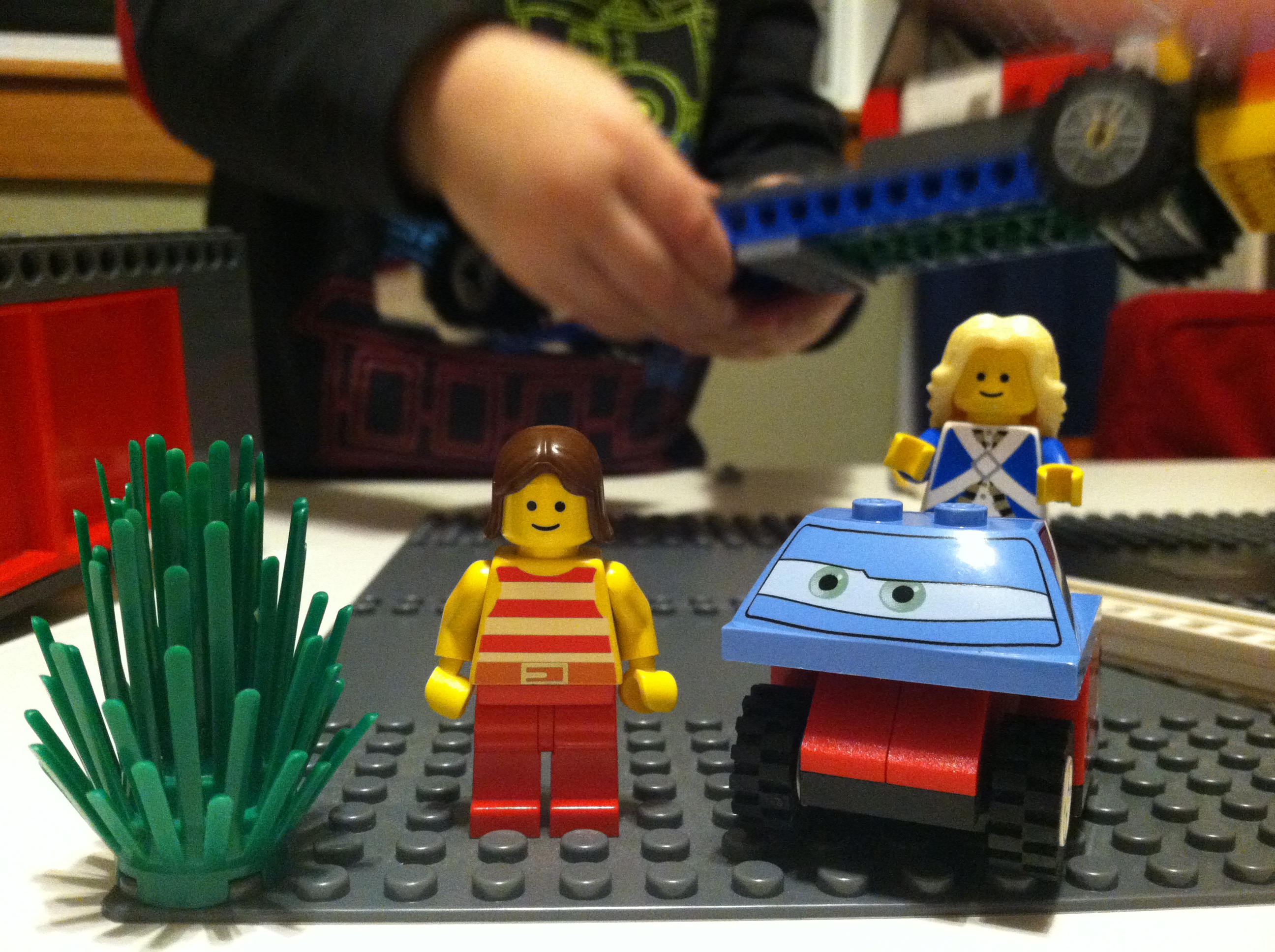 And those Legos are totally from the 80’s! That lady Lego is the spitting image of Farrah Fawcett, don’t you think? Aaron brought those back from the farm; they are the same ones he played with way back in the day.