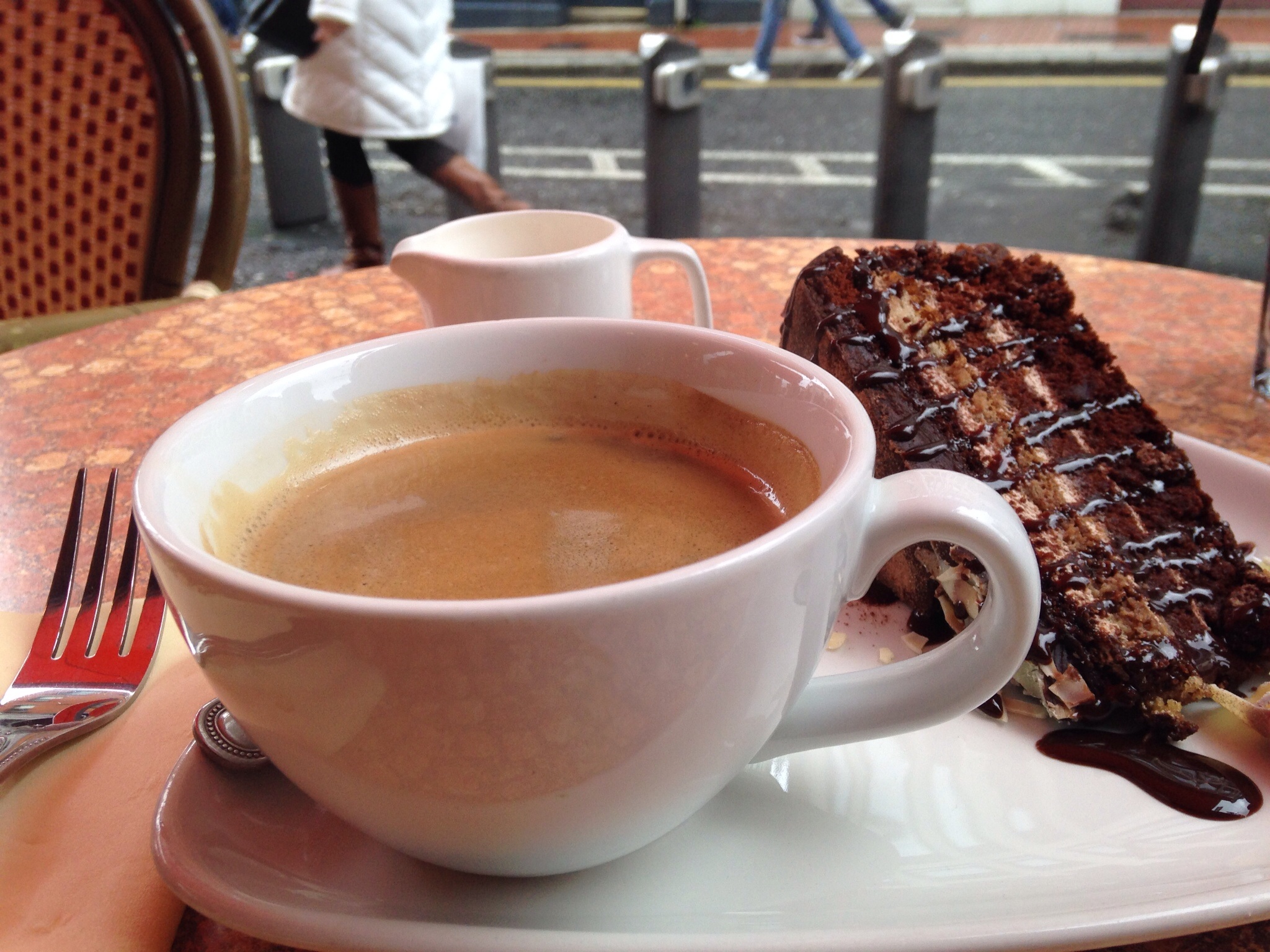 Sitting outside, drinking coffee and sharing cake. Perfect.