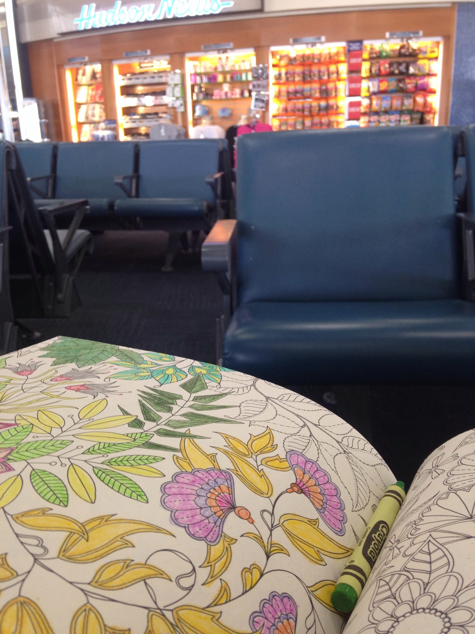It’s beautiful and intricate and therapeutic. It sucks you in and won’t let you go. I spent hours coloring at the airport and on the plane ride home. I didn’t really care who was judging the 30 year old with crayons. They were probably jealous and wanted the same book on their lap.