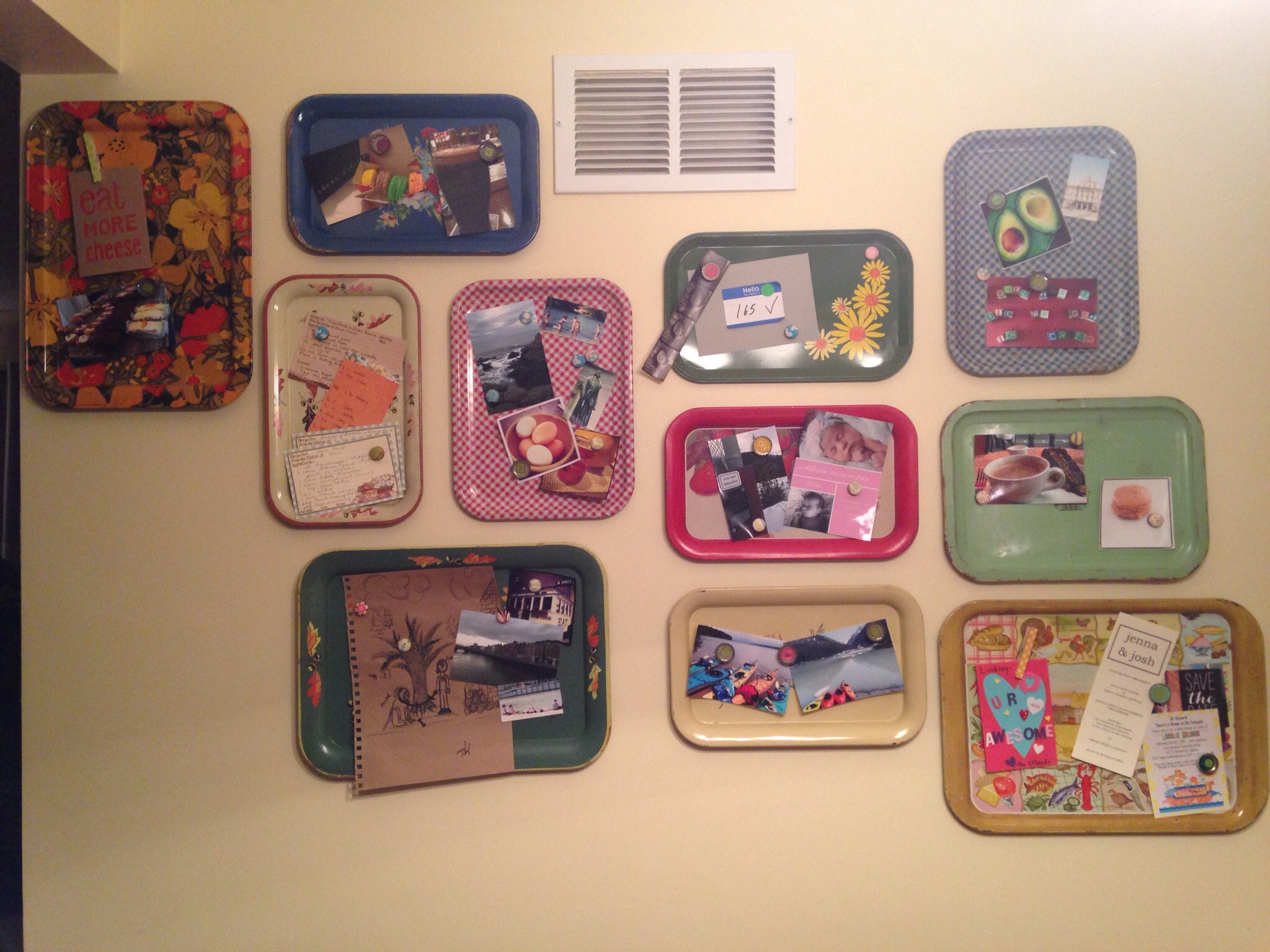 And, finally, a couple new metal trays for my wall of trays in the kitchen. Have I shown you my wall? It’s the best because they are light, easily found second hand, hung with 3M strips, and, while they bring cheap funky color to the room, they also double as magnetic spaces. The new two will likely cap off the collection and the wall.