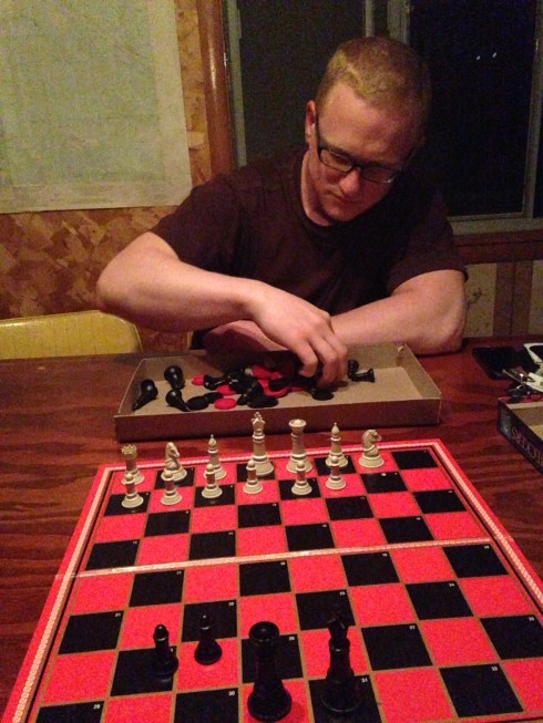 Below are a few photos from cabin time entitled: “morning cabin coffee time,” “a nerdy chess instructor,” “fetching a geocache high in a tree,” “fire tower graffiti from the past,” “the view from the ridge,” and “this is me sitting on a recliner in the sunshine relaxing the afternoon away.”