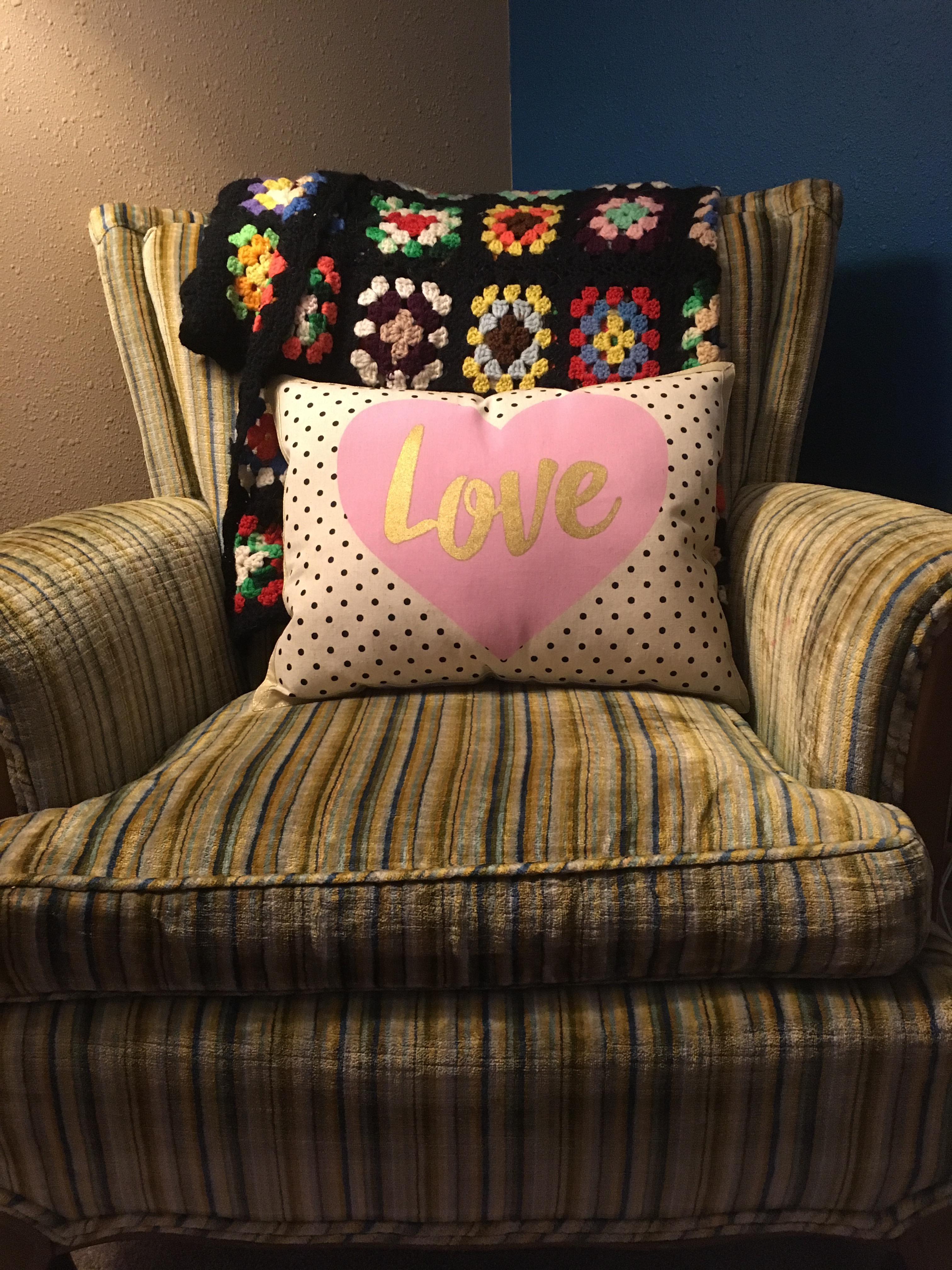I made new Valentine throw pillows for my couch tonight. They cost $2.99 each (plus the batting I already had). That’s a cheap pillow!