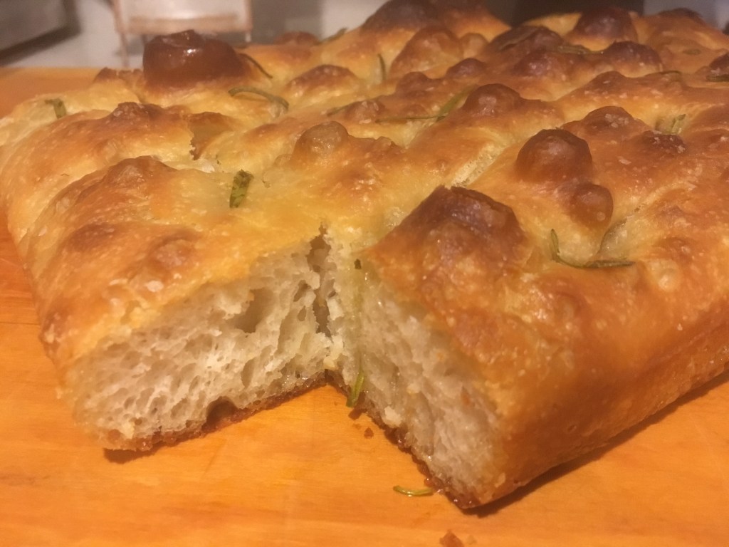 It’s a thing of beauty. And super delicious. Look at those glorious bubbles created by the wild yeast in the starter! Maybe tomorrow morning we’ll cut a piece in half to make egg sandwiches. (YUM.) Dave said it kind of tastes like pizza bread which means next time we really should smoosh chunks of mozzarella and pepperoni in it and dip it in marinara. (YUM.) This time around I added rosemary (my favorite from the garden) but cheese is always a good idea.