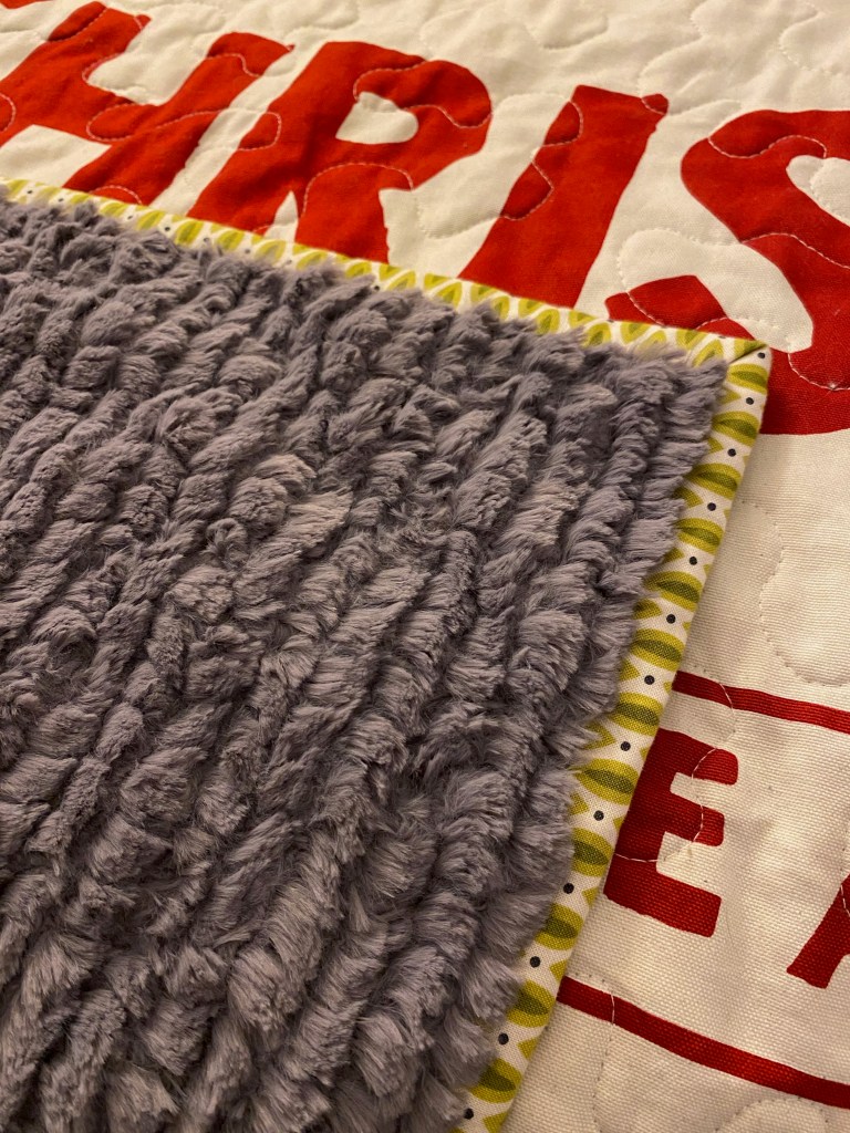 Quilt panel the first. The original. The reason this all started. I ordered the panel and cuddle minky to go on the back. And let me tell you. The cuddle minky on the back makes it the heaviest, comfiest, warmest couch throw. Dave felt it and immediately wanted his own.