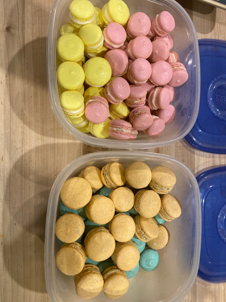In the meantime, I have two Tupperware containers full of macaron trials in my freezer. They’re not perfect but they still taste good. My coworkers are about to have their pick of French sandwich cookies. (Because what else does one do with so many cookies?)