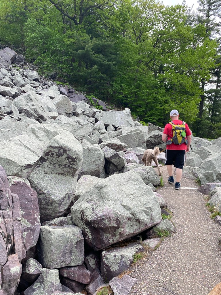 We drove to PA where we would spend the next three nights with Dave’s brother, Ryan and his family. More specifically, Dave and Ryan would embark on an overnight hike on the Appalachian Trail, complete with a black bear encounter and coming to the aid of a sick through-hiker. While they were off on their adventure, I did a little hiking with the family left behind and engaged in some alone time, antiquing and cross-stitching.