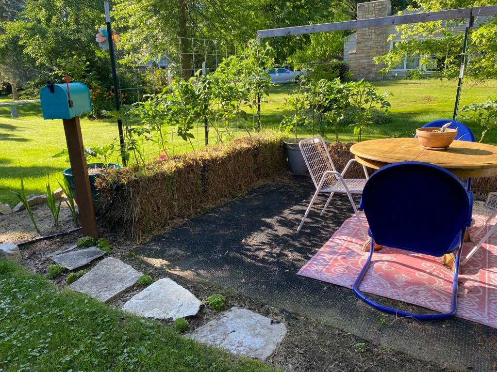 The gardens on Beacon are plugging along. Baby green tomatoes are growing in number, plants are growing taller, reaching towards the sun. I kind of dropped the ball on anything but tomatoes and peppers; our established veggie area is slowly becoming more shaded because of the surrounding trees so not all bales get the sun required. I half-heartedly planted zucchini and green bean seeds with nothing to show for the quick effort. Oh well. We’ll have to buy those at the store or farm stand.