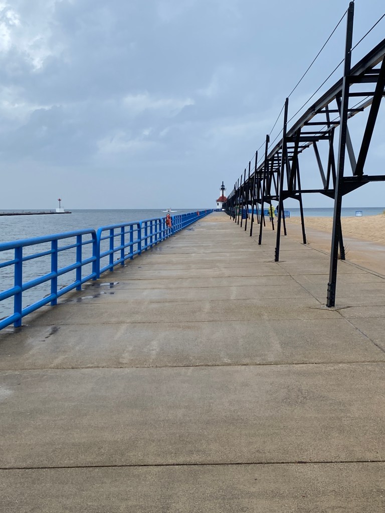 We walked out to the lighthouse at St.Joseph, raincoats and all, before driving to New Buffalo to Beer Church Brewing for lunch. It’s a brewery. In a church. And they embrace it in all things; their menus are called hymnals. The meatball sandwich we shared sustained us through inevitable Chicago traffic before we arrived home to two very excited dogs.