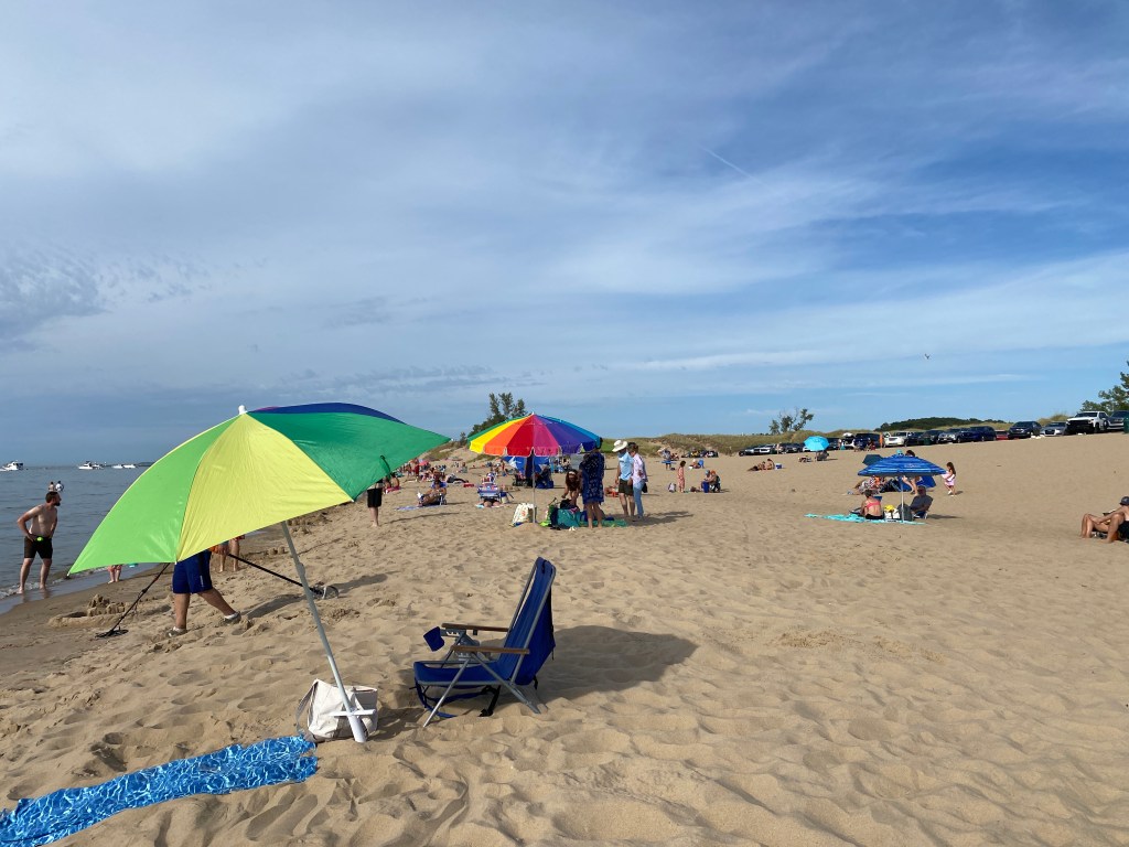 We continued onto Saugatuck where we didn’t explore the town so much; we sat on Oval Beach in the beach chairs we packed and enjoyed the warm September afternoon. Cat naps were taken. After that, a stop at Waypost Brewery where they let chickens roam freely through the outdoor seating and playground.