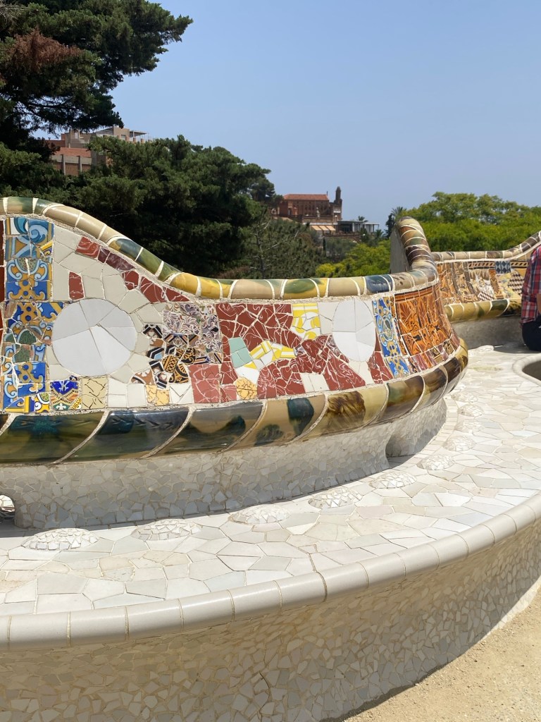 From here we explored a local market and oh, the seafood we saw on ice. A quick stop back at the hotel and then we had a mountain to climb. Our next stop was a guided tour of Park Güell (pronounced ‘gway’). It was 2.5 miles from our hotel and we said, eh. We can do that. We weren’t anticipating the heat or the hill, aka mountain. We made it but barely. The tour was a bit overshadowed by our exhaustion but still cool to see. This park, by architect Antoni Guadi, was commissioned as an exclusive community but no one bought onto the idea so in the end, it became a park.