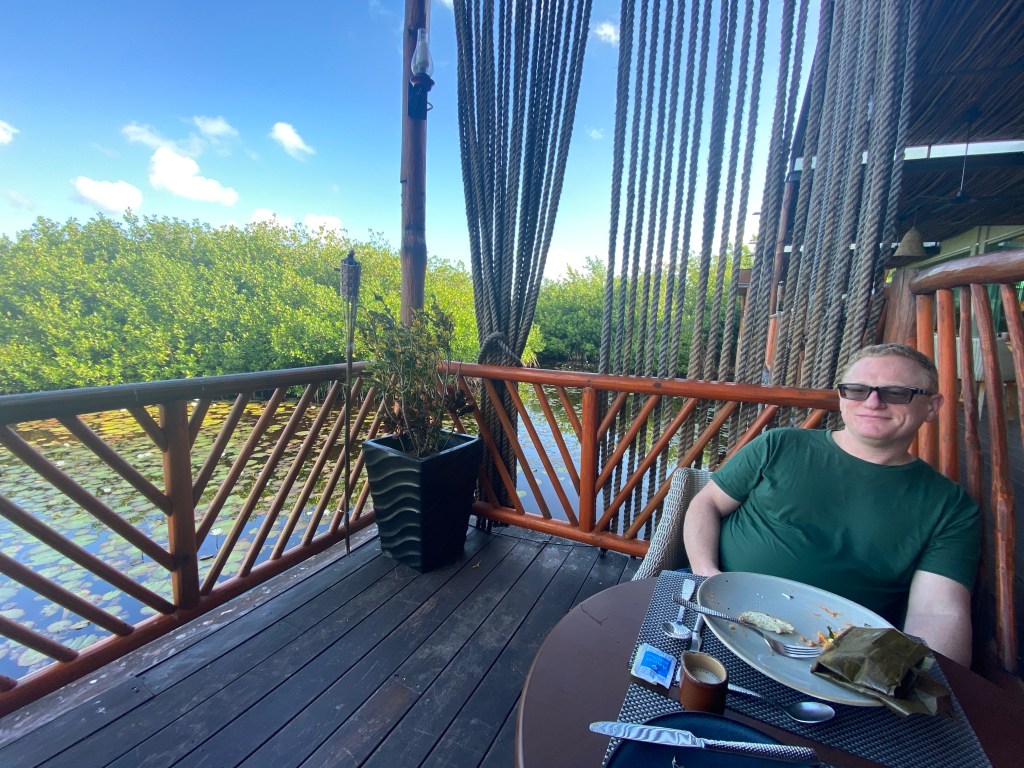 We booked an all-inclusive resort south of Cancun on Riviera Maya. Our resort – El Cid Ventus Ha – was about a twenty minute ride from the airport. Our resort was actually one of three connected resorts on a single sort of “campus”; we could wander freely between them, enjoying all the pools and restaurants.