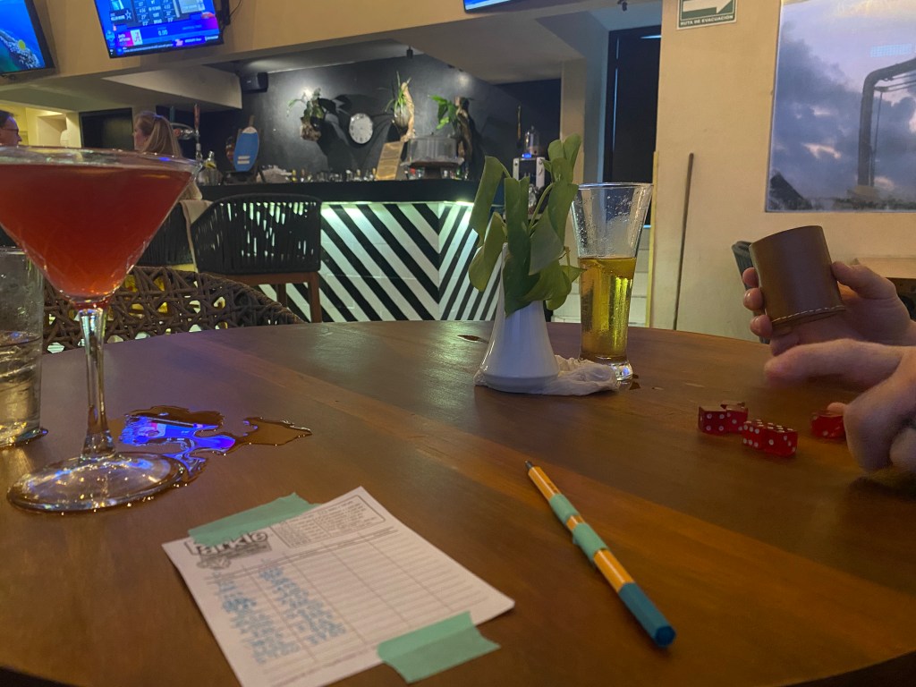 * We both discovered how much we love sparkling water with lime. (We’re stocking the fridge with limes now.) It was a good balance to the margaritas and cervezas (also with lime) and cosmopolitans …