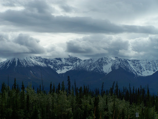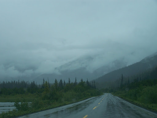 It seemed I suddenly turned a corner and there were these huge, snow-capped mountains looming in front of me. I found energy, excitement, and wanted to drive closer to find a better angle for a picture. I found my new animal. I was going to stop in Haines Junction for the night, which rests at the feet of these mountains [the icerange – the highest mountains in canada] but found no vacancies. Driving along the mountains gave me the extra energy to travel another three hours [making it a 14.5 hour drive today] to Beaver Creek.